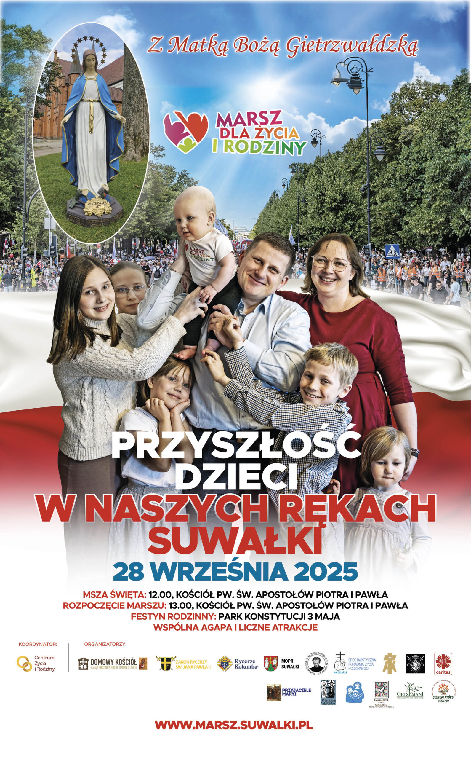 Zapraszamy na Marsz dla Życia i Rodziny w Suwałkach, który już po raz czwarty przejdzie ulicami stolicy Suwalszczyzny. Hasło tegorocznej edycji wydarzenia brzmi: "Przyszłość dzieci w naszych rękach”. W tym roku chcemy szczególnie zwrócić uwagę na odpowiedzialność dorosłych za wychowanie i formację młodych pokoleń.